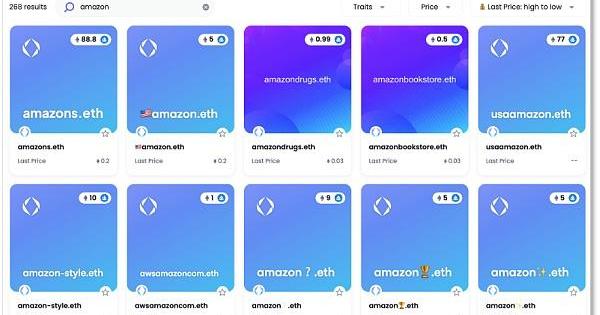 有人在OpenSea上为「amazon.eth」这一域名出价100万USDC,但这个出价没有得到该域名拥有者的回应。最终,这个域名也没有以这个价格成交。而该域名的最后一次销售是在5个月以前,售价为33ETH,以当时ETH在3000美元附近计算,最后一次的成交额接近10万美元,而目前仅值不到5万美元。该域名当前没有新的挂售价。