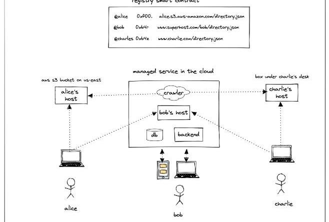 注册表是一个智能合约,它能让Farcaster用户轻松找到彼此,这很重要,因为Farcaster的架构决定了用户数据可能分散在不同的服务器上。用户必须生成一个新的以太坊地址,并通过向注册表广播交易,领取一个唯一用户名,例如@alice。用户名还必须关联一个有效的主机URL,例如https://alice.com/host,用户数据将存储于此。