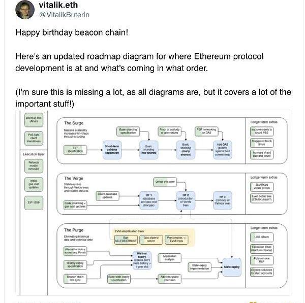 还值得注意的是,这个zkEVM的未来有望变得更加光明。例如,以太坊备受期待的Merge更新将在今年晚些时候进行,但这并不是领先的L1技术路线图的结束。TheMerge之后将出现TheSurge,它将通过分片为汇总引入大规模的可扩展性改进: