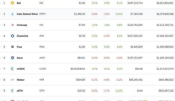 DeFi项目锁定资产前十排名及锁仓量数据来源:defillama