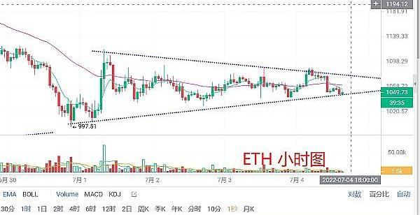 以太坊日线级别,也是围绕着BOLL中轨附近,来回震荡