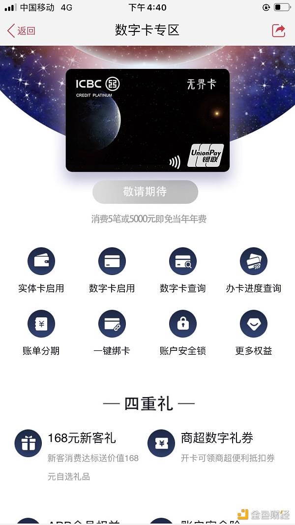 8月31日消息,中国工商银行官方宣布发行数字信用卡:无界白金数字卡,并且在官方APP“工银e生活”中开设数字卡专区,用户现在可以进入选择数字卡启用并完成“一键绑卡”。也就是说,如若启用数字卡,需要工商银行信用卡。