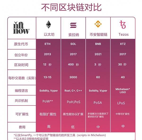 选择在哪条区块链上铸造NFT时,要考虑到这些要点:网络规模,创建成本,消费者的消费习惯,安全性和社区输入。以下是对NFT区块链的高度概括: