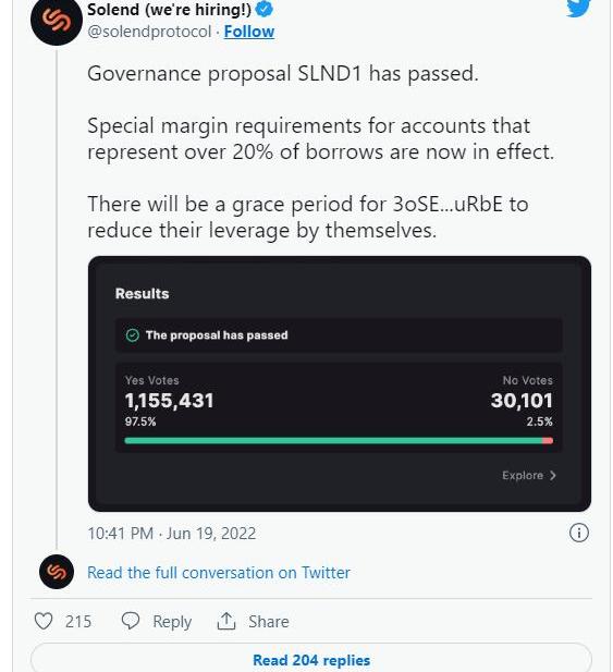 这一情况引发了加密货币社区的强烈反对,许多人质疑平台声称自己是去中心化的,但是却为少数人的利益服务,违背用户的意愿来控制用户的资金。虽然SolendDAO后来再次投票否决了该提案,但是当少数持有人控制了非常庞大的治理代币份额时,DAO是否能够为所有参与者的最佳集体利益行事将会引起质疑。