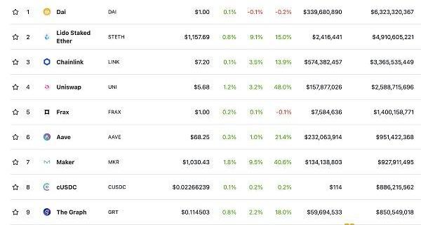 DeFi项目锁定资产前十排名及锁仓量数据来源:defillama