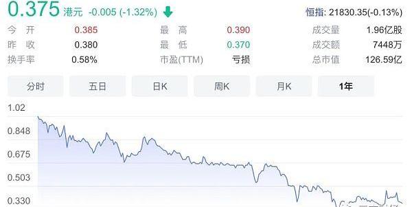 截至今日收盘,国美零售报0.375港元;过去一年来,国美股价一泻千里,一路走低。