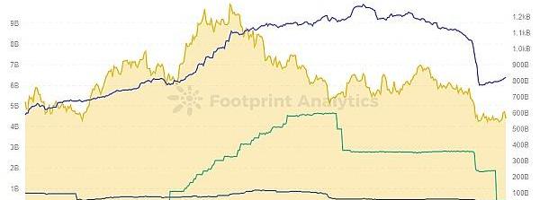 在FootprintAnalytics的数据可以体现出,在2021年7月之前BTC的价格与Nasdaq100Index的关系基本不相关,但之后两者的相关性越来越强。整个加密货币的波动都受到美股的影响,曾经进入加密货币的用户一部分是为了避险,但现在看来好像没能实现这一目标。
