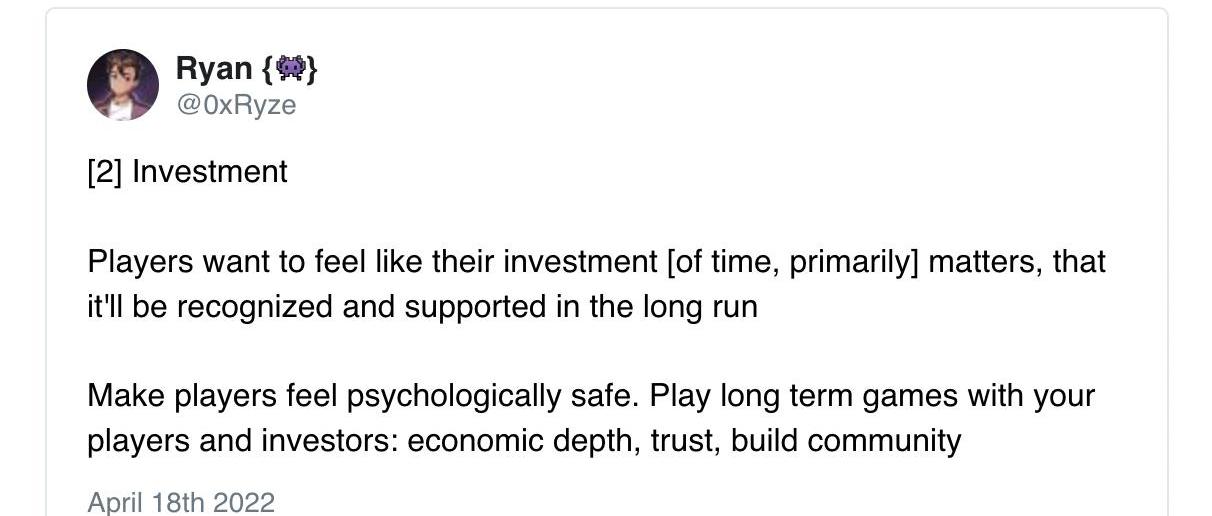 同样重要的是通过让玩家感到安全并与社区建立信任来增加投资。