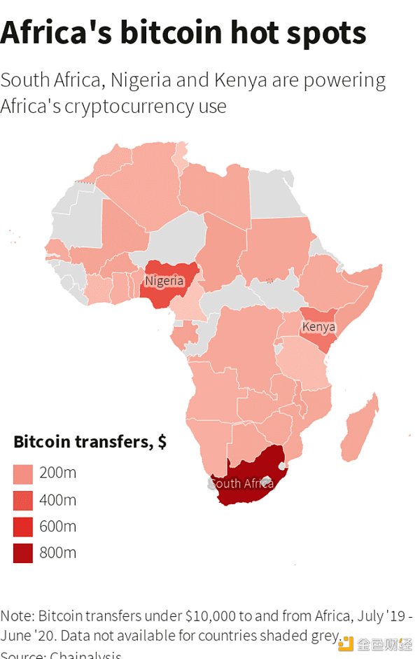 Chainalysis表示,每月转账的次数也增长了近一半,超过了600,700次。该公司表示,这项研究是迄今为止在规划全球密码使用方面最全面的一次。而其中大部分活动发生在非洲大陆最大的经济体尼日利亚、南非和肯尼亚。