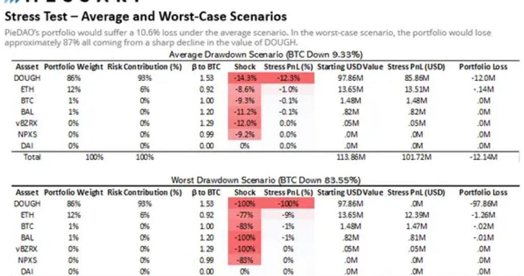 我们在这篇文章中多次提到主要的缩减保护和远离遵循特定回报模式的资产的多样化,这是一个原因。对DAO财库世界感兴趣的人的另一篇必读文章来自我们在Messari的朋友。他们对PieDAO的财库进行了压力测试,以应对BTC价格的重大下跌,并表明它对重大市场调整的准备非常不足。