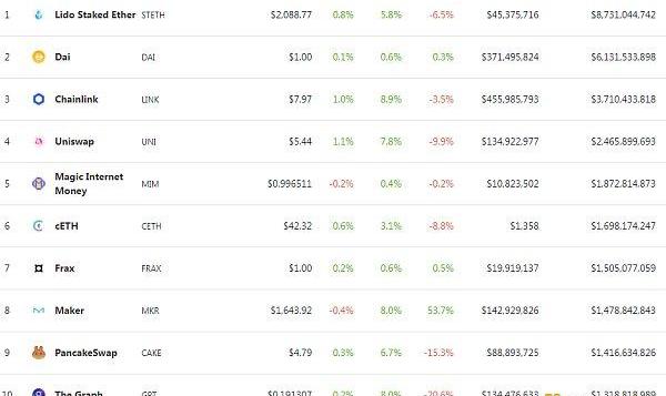 DeFi项目锁定资产前十排名及锁仓量数据来源:defillama