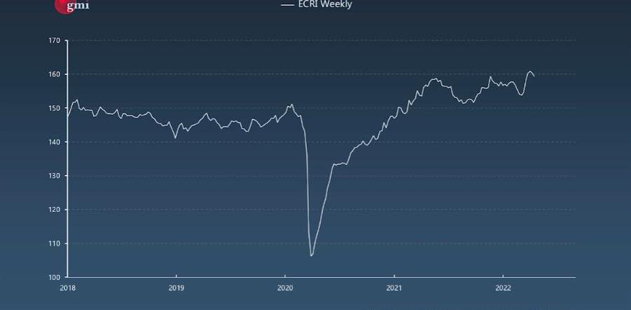 下图显示的是经济周期研究所年度同比变化图,我们可以看到该指数近期一直在大幅下降,已经趋近于零,未来还有近一步下跌的可能。但好在该图显示的是同比变化率,就指数本身而言我们一直处在增长阶段。这表明也许我们不会经历衰退,又或者已经遭遇了增长冲击,毕竟经济衰退之后一般都会出现增长冲击。如果ECRI不再下降的话,那我们可能真的已经步入了稳定阶段,这将在未来的六个月内见分晓。