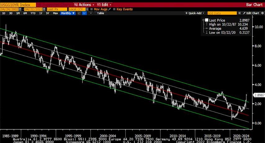 让我们来谈谈利率和债券,就美国每月的总回报率而言,债券在我的整个职业生涯中经历了最大规模的抛售,也是历史上规模最大的抛售之一。我们又回到了1970年代的位置,虽然不是当时年代的重现,但此次抛售的规模也十分空前了。