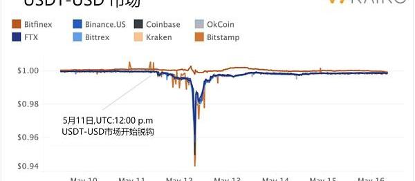 Binance的UST-USD对是交易量最高的UST市场,因此BTC-USDT的买盘深度激增可能与这个第三方试图捍卫UST的挂钩有关。Binance是清算价值数百万美元的比特币来收购Tether(USDT)的一个合适选择,而Tether(USDT)又可以用来购买UST。