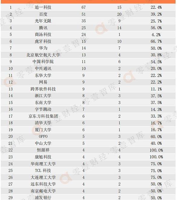 腾讯、商汤科技、虎牙科技、光年无限及华为均进入榜单前十。值得注意的是,虎牙科技及商汤科技暂无发明专利授权,光年无限及华为的授权专利全部为发明专利。