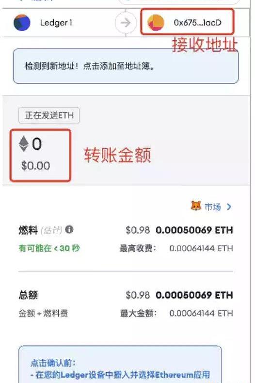 对于转账来说比较简单,只要确定收款地址和金额就好了。