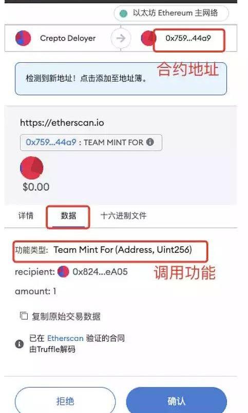 大家在很多网站上遇到更多的情况是合约调用,例如mintNFT之类的操作等。