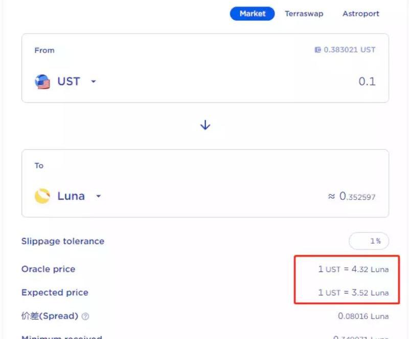 那么就要手动上调预言机的价格,放弃1:1刚兑机制,转而保持Luna对UST的溢价,变相让UST燃烧者知难而退。去燃烧UST就知道了,例如Luna市价1.1,但燃烧价是1.3,套利空间极小,这也是为什么UST至今没有回锚的原因。