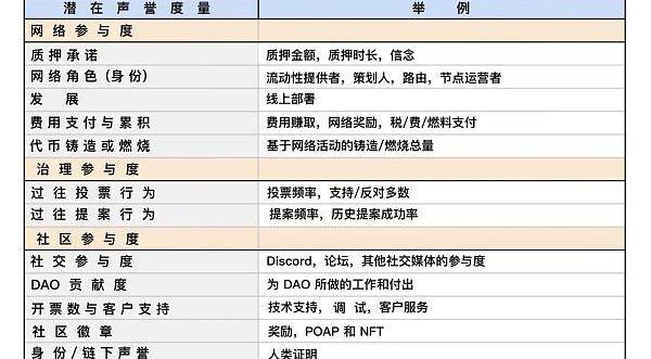 DAO可以在其协议中根据网络参与度、治理参与度和社区参与度来度量奉献度。DAO不能仅仅依赖代币所有权,而是应当要求其成员参与到协议和DAO之中,去建立声誉。