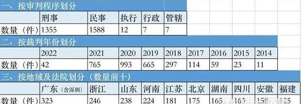 整体来看,相关判决呈逐年增长的趋势,2014年判决数量最少,仅11件;2020年判决数量最多,达993件。考虑到案件审理周期长、披露延迟等因素,2021年的判决或未完全披露,但也已达765件。