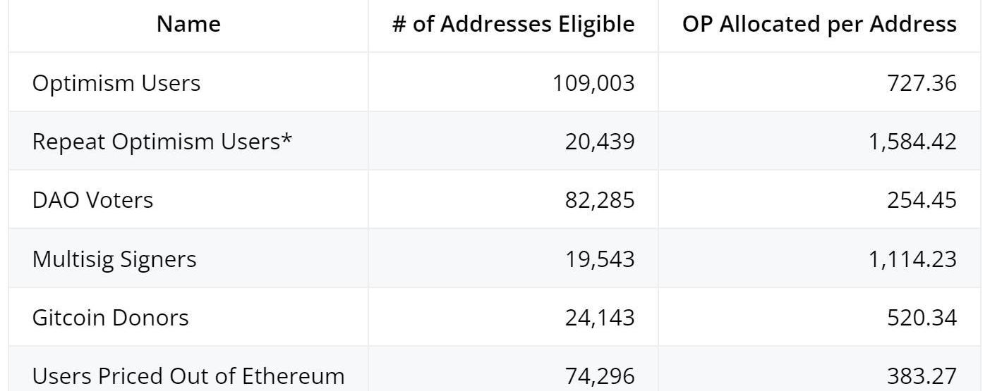 标准:在主网早期阶段从L1桥接到Optimism的地址,或使用Optimism超过1天并使用应用程序进行交易。