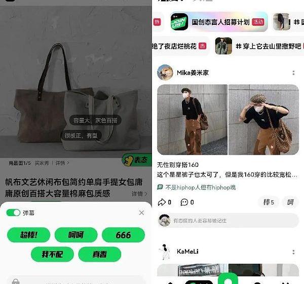 在商品页和店铺页,用户可以“表态”,即发送弹幕评价。在“态度”版块,对于用户发布的内容帖子,点赞和不同意的按钮变成了更有个性的“棒”和“呵”。