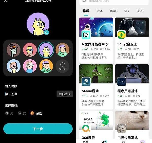 近期,奇虎360的元宇宙产品“N世界”上线试运营,定位于“年轻人的兴趣元宇宙,多人沉浸式互动社区”。