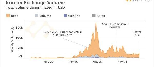 交易量。自11月以来,在更严格的监管下,韩国的交易量下降了140%。