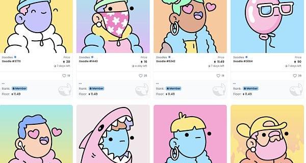 可爱画风:在满篇都是潮酷炫的猴狗猫的NFT市场,可爱的、简易的、人形的Doodle脱颖而出。