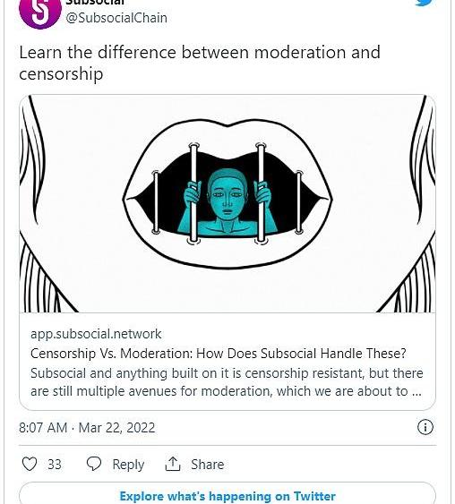 如果希望创作者在Subsocial这样一个完全去中心化的平台上监控自己的内容,那么如何控制非法内容和虚假信息的传播呢?多年来,社交媒体的审核一直是一个有争议的话题,Facebook和Twitter等平台在过滤危险内容和维持其提供开放性对话的承诺方面都没有做好。