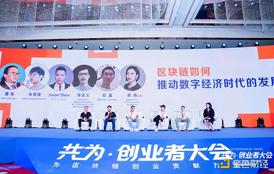 演讲过后是两场精彩的圆桌对话,首场圆桌是《区块链如何推动数字经济时代的发展》。圆桌主持是金色财经合伙人佟扬,参与嘉宾为蜘蛛矿池联合创始人曹军、长亭科技区块链高级安全研究员张景驰、UENC Co-Founder Jason Shen、高维空间创始人陈定义、慢雾科技合伙人启富。