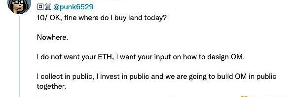 在长达八十多条的推文中,这位曾打破了多个NFT系列最高单次成交价格,以一己之力搭建起了一座NFT“博物馆”,长期以第6529号CryptoPunks的头像及名字示人的业界先驱用稍显碎片化的话语就OM的设计初衷、发展理念、现状及愿景等进行了全方位的阐释。