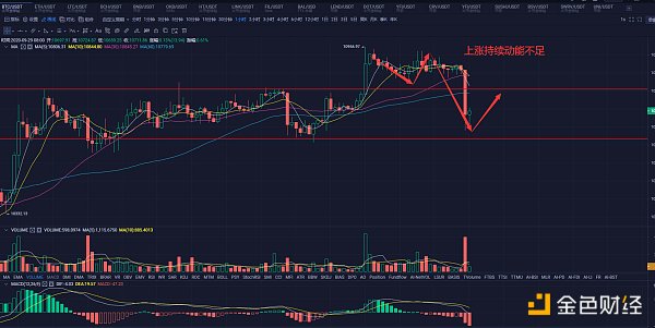 实际上昨天美股和黄金都是上涨的,但比特币却没有在昨晚这二者上涨的时候继续冲高,原因或许是昨天早上比特币已经上涨过多,实现了原本的上涨预期,所以黄金美股上涨时比特币出现滞涨仅是在震荡。当前行情已经回到了10600—10800美元区间,日内或许还有向上摸一下顶的机会,关注其在摸高10800美元的时候在该位置的支撑情况。