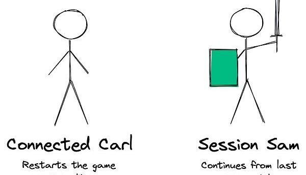 Sam就不会有这样的问题了。Dapp对其进行了认证并且建立了session之后,相关信息就会被保存下来。即便Sam断开连接并且重新进行认证,session也会从他离开时的状态继续,应用程序仍然记得与他相关的一切。他的信息甚至可以保存在他控制的一个远程数据库中。