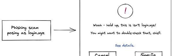 连接钱包后的第一步是给用户提供人类可读的消息,这样他们才能理解自己进行了什么交互。在很多案例中,用户看到的是"LOGIN"(登录)字样,或者一些让你登录的文字,甚至有时只是一个任意的数字(在这里,对这个随机的疯狂的字母和数字集合签名吧)。那么相反,我们可以根据现有实践确定一组必需的字段、设定好许多良好的安全措施和一个在人类可读和安全运行之间平衡的严格语法。此外,钱包不需要改变它们现有界面和实践,至少可以继续为用户提供这类信息。