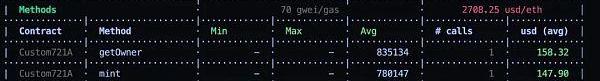 在2708美元/ETH和70gwei/gas的价格下,检查所有权和转移ID为330的单个代币的成本高于铸造350个代币。这是因为_ownershipOf中的循环从330变为0,并且每个SLOAD操作都要消耗gas。