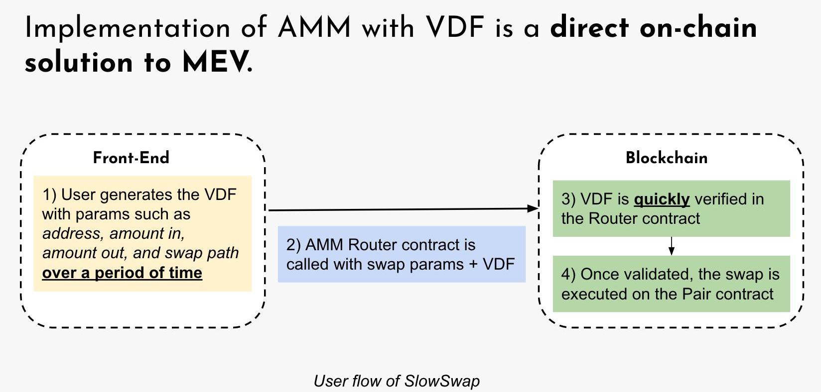 SlowSwap是一个具有可验证延迟函数的AMM协议,也是UniswapV2的分叉项目,可防止最大可提取价值和三明治攻击问题,将构建在以太坊上,目前已上线Ropsten测试网。