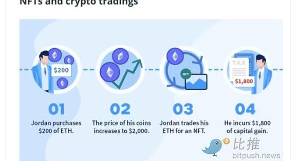 处置您的加密货币被视为应税事件,使用以太坊(ETH)或其他加密货币购买NFT就属于这一类。根据您最初收到加密货币后价格的变化情况,您将产生资本收益或损失。