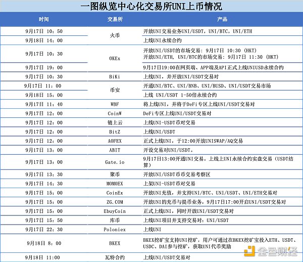 前有Sushiswap,后有Uniswap,OKEx、火币、币安三大交易所同一天相继宣布上线Uniswap治理代币UNI,甚至Coinbase也来凑热闹,宣布开始接受Uniswap(UNI)存款,若流动性满足则将于今日开启UNI交易。