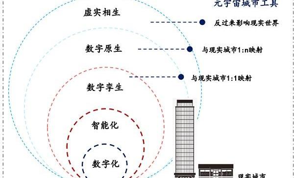 数字孪生在城市领域的应用强调对实体空间的精确复现,可对城市的物理空间发挥模拟、预测等作用。通常认为,元宇宙是在精准模拟物理空间运行的同时,创造数字空间中的原生体验,探索数字空间中特有的生活方式和社交形态,进而实现数字空间反向影响物理空间。通过对城市演进的探讨,城市系统未来的发展会在思维方式上从数字化走向智能化,进而从数字孪生走向元宇宙。