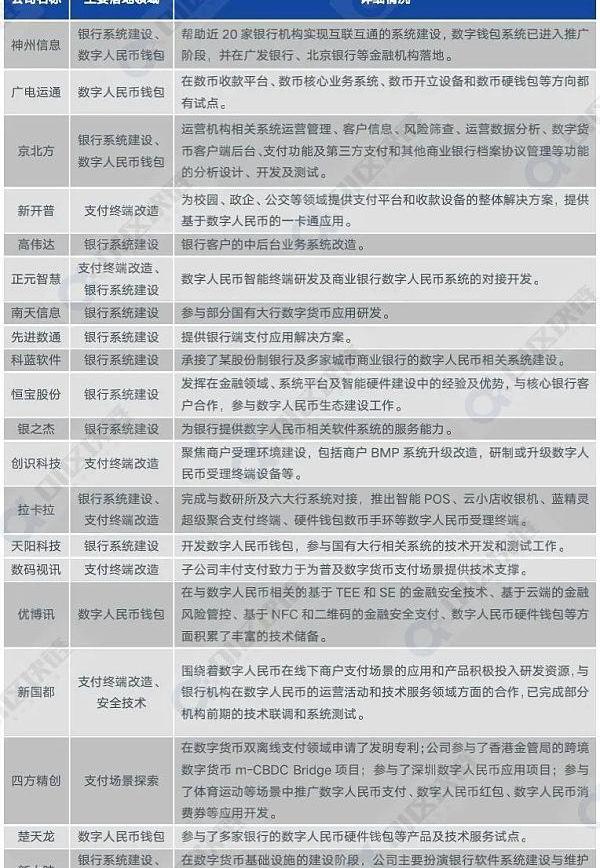 其中,对于相关技术服务商而言,数字人民币的应用为安全加密企业、银行IT服务商以及POS机、ATM机、钱包等相关智能硬件和软件厂商带来新的增量市场空间。