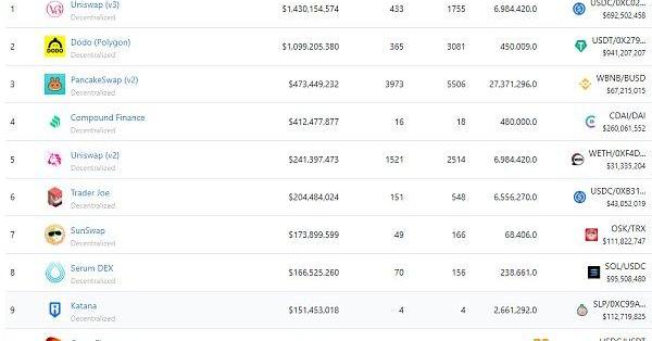 过去24小时去中心化交易所的交易量数据来源:coingecko