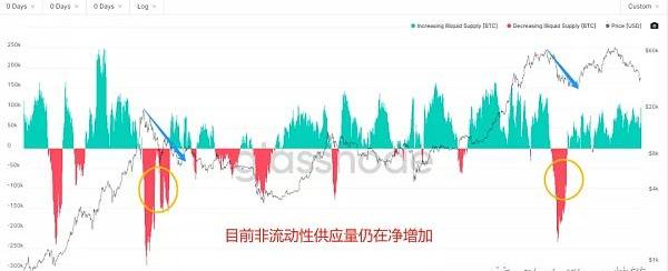 图12:2016年至今非流动性供应量变化与BTC价格对比