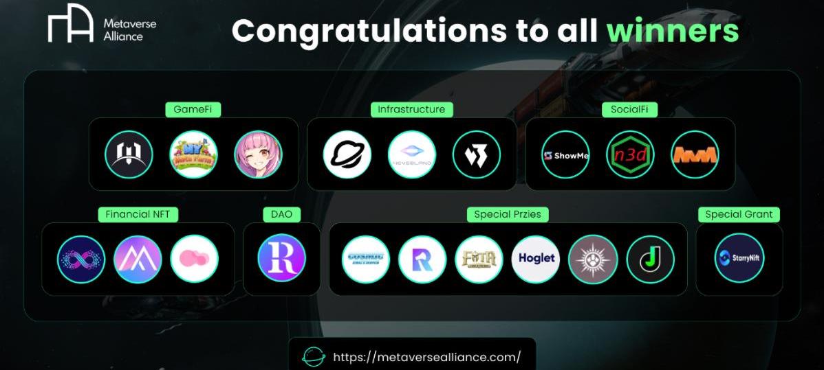 也非常感谢我们的合作伙伴,他们相信MetaverseAlliance的潜力,并帮助传播把关黑客松,一起创造了奇迹。再次感谢我们的评委在繁忙的工作中抽出时间来评选项目。