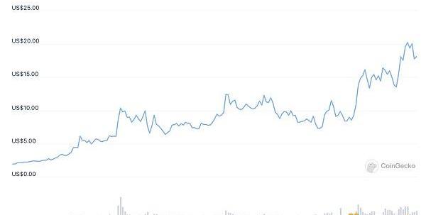 根据Coingecko数据显示,NEAR在最近30天内涨幅达132.1%,最近7天内涨幅44.3%,远远超过比特币同一时期涨幅。不仅如此,在1月16日,NEAR更是创下历史新高达到20.44美元。