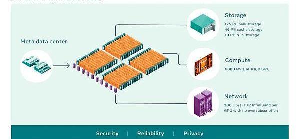 与Meta的传统生产和研究基础设施相比,它运行计算机视觉工作流程的速度高达20倍。在2022年底之前,AI超级计算机将完成第二阶段,完成后包含大约16,000个GPU。它的混合精度计算性能会接近5exaflops。