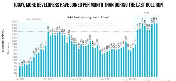 每个月有超过3000名新开发者尝试Web3--这是一个历史性的高点.