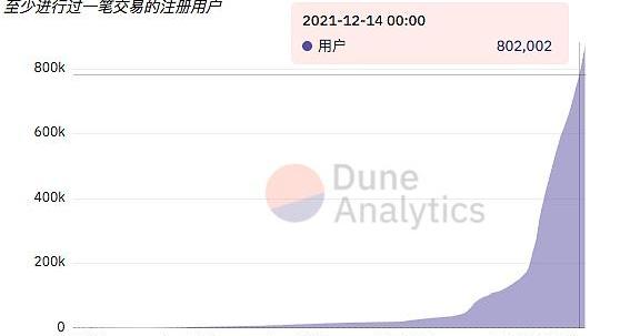 来源于DuneAnalytics的OpenSea看板的数据显示,OpenSea以太坊方面的交易量在8月份达到34亿美元,并在后几个月一直保持在23亿美金交易量以上的水准,而在用户量方面也呈现出不断攀升的数据指向,一段时间内OpenSea的以太坊交易者总数突破81万。以上还仅仅是以太坊公链的单个数据统计,此外,还有Polygon等众多公链也在NFT市场方面有不同的产出和交易。