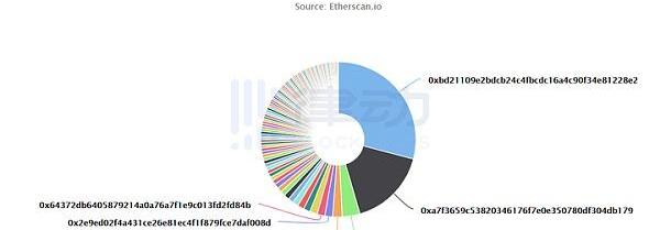 仅前4大地址持有的ENSERC-721token,就已占据ENS域名总量的一半以上。以尾号「28e2」的地址为例,该地址持有高达40,798个ENS域名,是ENSERC-721token的最大持币地址,占全部ENS的29.1%。