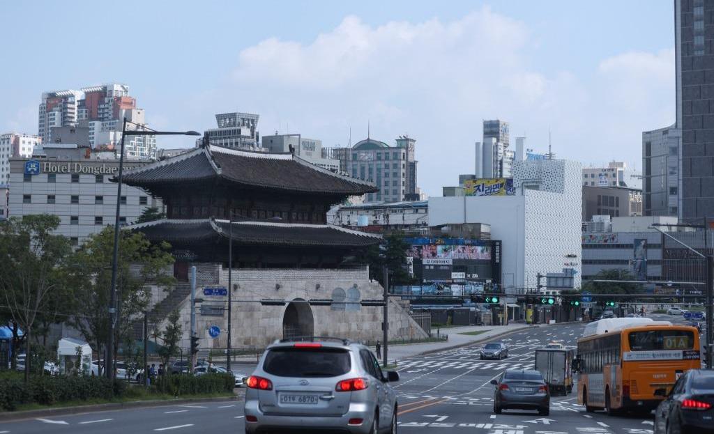 2020年8月30日,在韩国首尔,东大门附近行人车辆稀少。